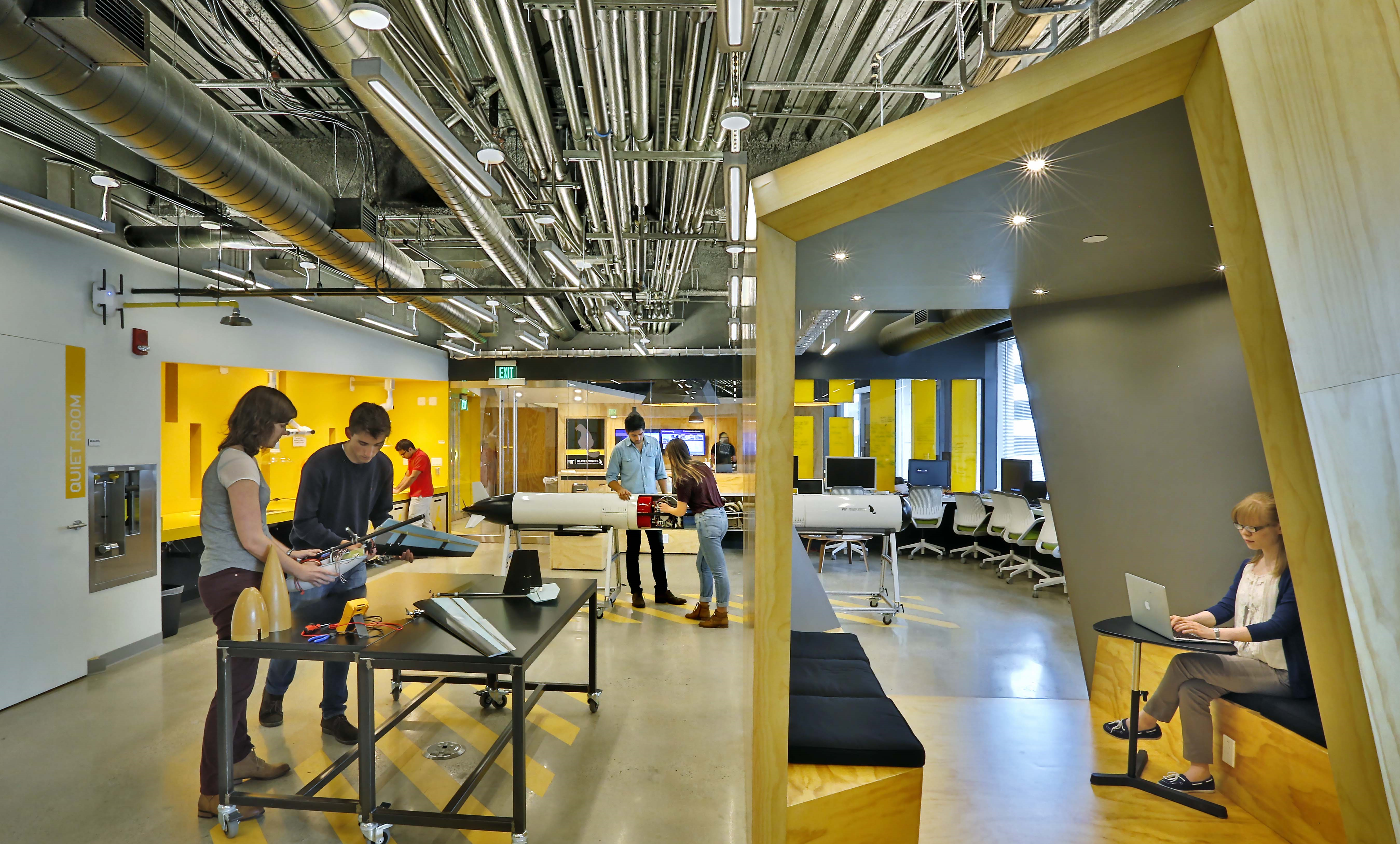 The galleries below will help you understand what the spaces in Beaver Works offer, and how we can best serve your needs. Please contact us to reserve a classroom, a maker space, or a collaboration space.