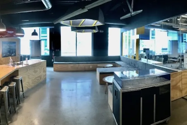 - Break Area: A café area is available with a coffee maker, hot water pot, sink, microwave, and small refrigerator with area for catering setup.